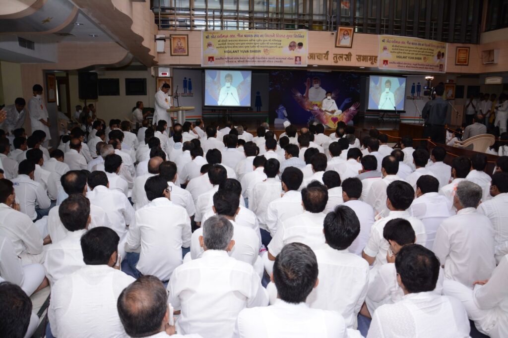 Muni Adarsh regularly conducts public discourses, Jain pravachans, vyakhyans, wellness shibirs, meditation camps, webinars, courses, and live interactive programs across India and internationally.