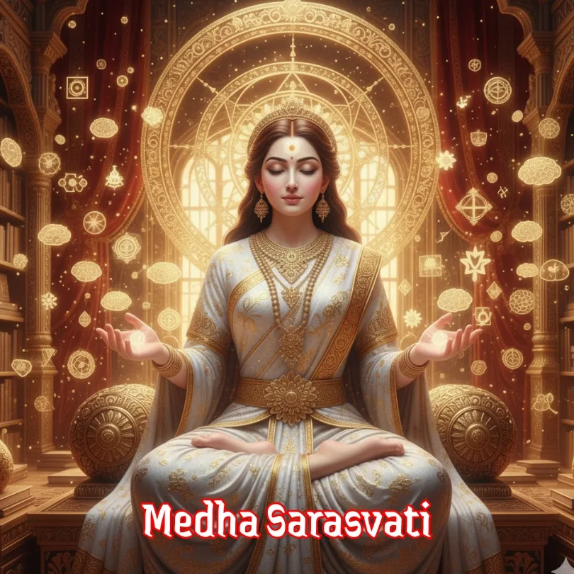 When Medhā awakens, the mind becomes sharp, fast, organized, and powerful. This is the Sarasvati form most needed in the AI era of information overload.